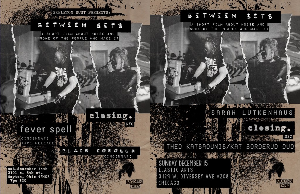 Filmmakers Kimberly Craven and Patrick Scott (closing. modern tapes) are taking their short documentary on a brief DIY screening tour of the midwest with stops at Skeleton Dust records in Dayton Ohio on Dec 14 and at Elastic Arts in Chicago on Dec 15 respectively. closing. will also perform a live set accompanied by real-time video feedback/synthesis. Please spread the word and we’ll see you there!